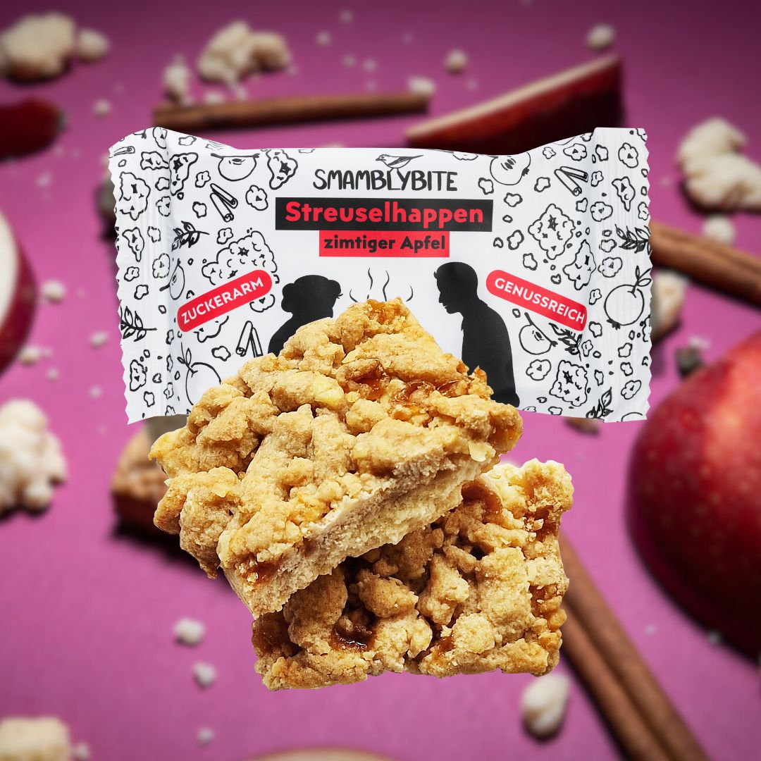Drei Sorten, drei Streuselträume: Schokotröpfchen, Apfel-Zimt und Mandel-Haselnuss. Leicht knusprig, buttrig und aromatisch – für alle, die Streusel lieben, nur jetzt im modernen Snack-Format.