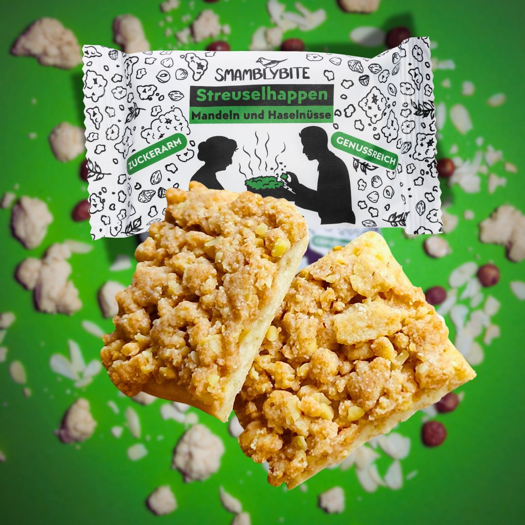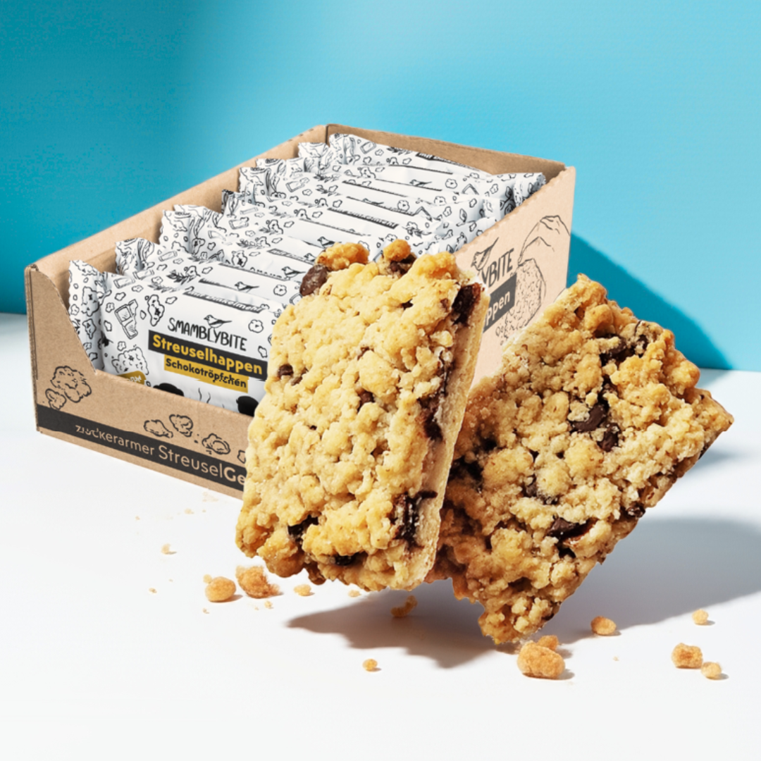 Sie sind zuckerarm und trotzdem süß – mit vollem Streuselgeschmack im praktischen Riegelformat. Wir haben die Streuselhappen gemeinsam mit einem Konditormeister entwickelt, damit du ein Premium-Geschmackserlebnis bekommst.